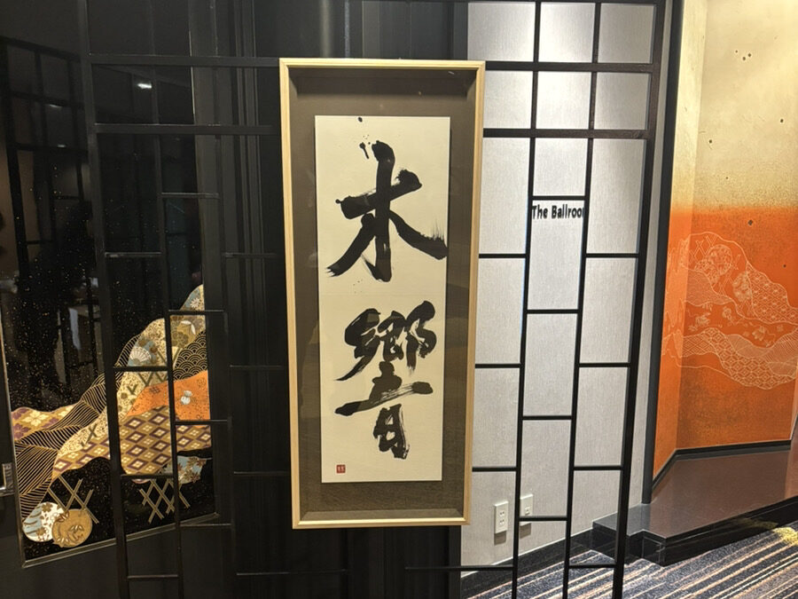 ▲ 書家西田裕美先生と新ロゴ”木響”