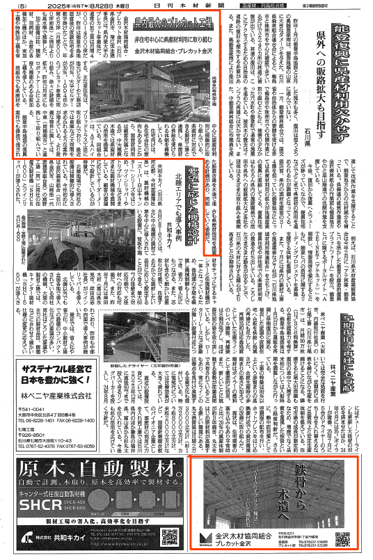 8月28日の日刊木材新聞に、金沢木材協同組合が紹介されました✨